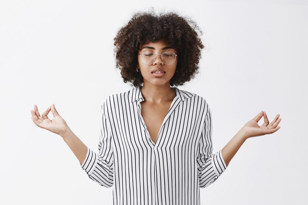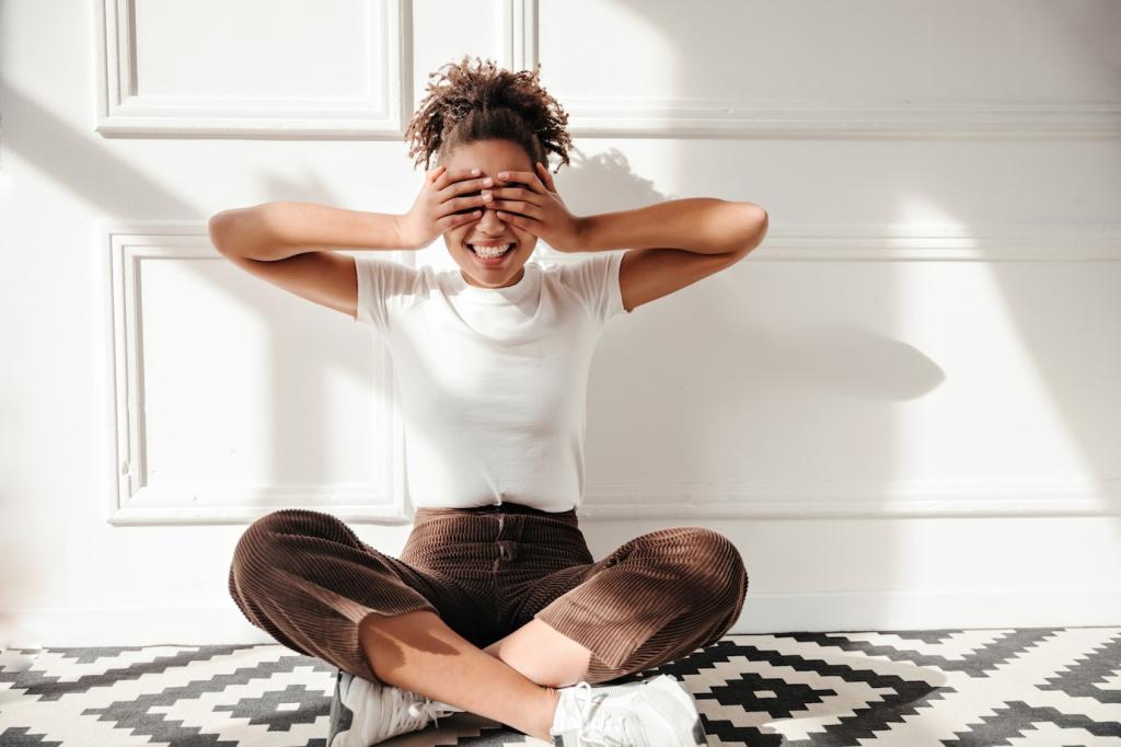 Lehne dich an, stelle beide Füße auf den Boden. Spanne Hände zur Faust, halte sanft, löse mit einem ausatmenden Seufzer. Lass Schultern schwer werden, Gesicht weich. Zwei Minuten reichen oft, um Fokus und Freundlichkeit zurückzuholen. Erzähle uns, welche Mikro‑Sequenz dein Lieblingsanker wurde – wir sammeln die besten Routinen der Community.